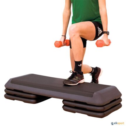 O Eco Step da Sveltus é compacto e leve, com superfície antiderrapante. Muito resistente, este step oferece uma excelente absorção de impacto graças à flexibilidade da sua plataforma, que ajuda a proteger as articulações, tornando-o um produto muito valorizado no setor da reeducação. Apresenta um design prático e funcional, adaptando-se perfeitamente às aulas de grupo. É facilmente empilhável para arrumação ocupando o mínimo espaço. Os pés podem ser guardados debaixo do step para permitir o empilhamento. · Medidas: 75 x 38 x 14 cm (sem pés) / 75 x 38 x 20,5 cm (com pés). · Peso: 2,1 kg (sem pés) / 2,8 kg (com pés). · Peso máximo suportado: 100 kg. · Cor: preto. Vendido à unidade ou em lotes de 10 steps a um preço mais económico.