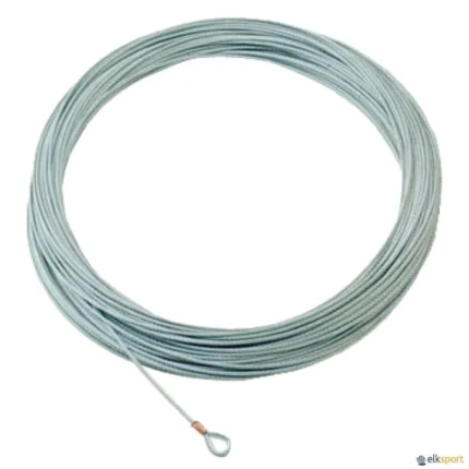 Cabo de aço inoxidável de 3 mm de diâmetro. Disponível em 2 comprimentos : - 26 m - 51 m. Recomenda-se acrescentar um tensor de rosca para que o cabo fique bem tenso.