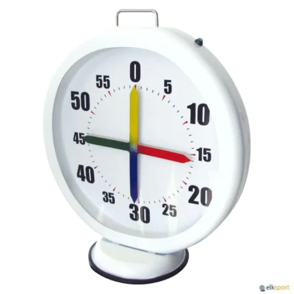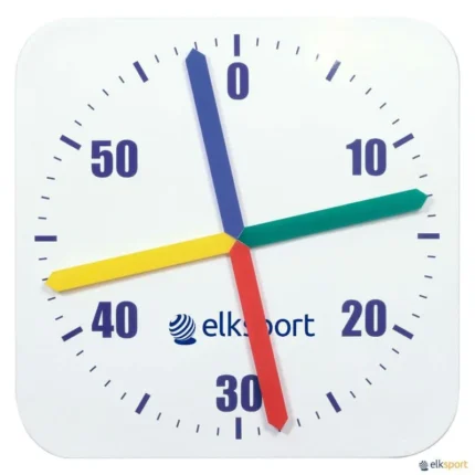 Fabricado com proteção frontal. Funciona com pilhas. Portátil. Agulhas cruzadas de 4 cores diferentes. Dimensões: 57 x 50 x 9/25 cm. Existe em modelo fixo, elétrico CRONÓMETRO 4 PONTEIROS.