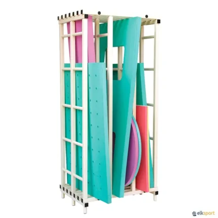 Fabricados em tubos de PVC quadrados, com 3 ou 6 divisórias verticais, para armazenar todo tipo de tapetes aquáticos. Existe em 2 tamanhos : Tamanho L: 105 x 73 x 230 cm - 3 divisórias verticais Tamanho XL: 200 x 73 x 230 cm - 6 divisórias verticais. Entregues montados, prever custo de material volumoso.