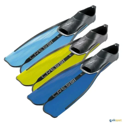 Barbatanas da Cressi fabricada 100% borracha natural. Grande resistência, convém tanto para utilização em piscina como no mar. A estrutura da barbatana coloca a bolsa do pé no meio da mesma para que a transmissão de força seja eficaz e reduzir as cãibras da plantas dos pés.  Todos os bordos em contato com a pele são redondeados limitando as irritações e calcanhar reforçado com lingueta que facilita colocação. 2 Cores: amarelo ou azul Existe em 4 tamanhos desde 23-24 até 32-33. Para armazenar e secar, sugerimos a ESTANTE PARA BARBATANAS.
