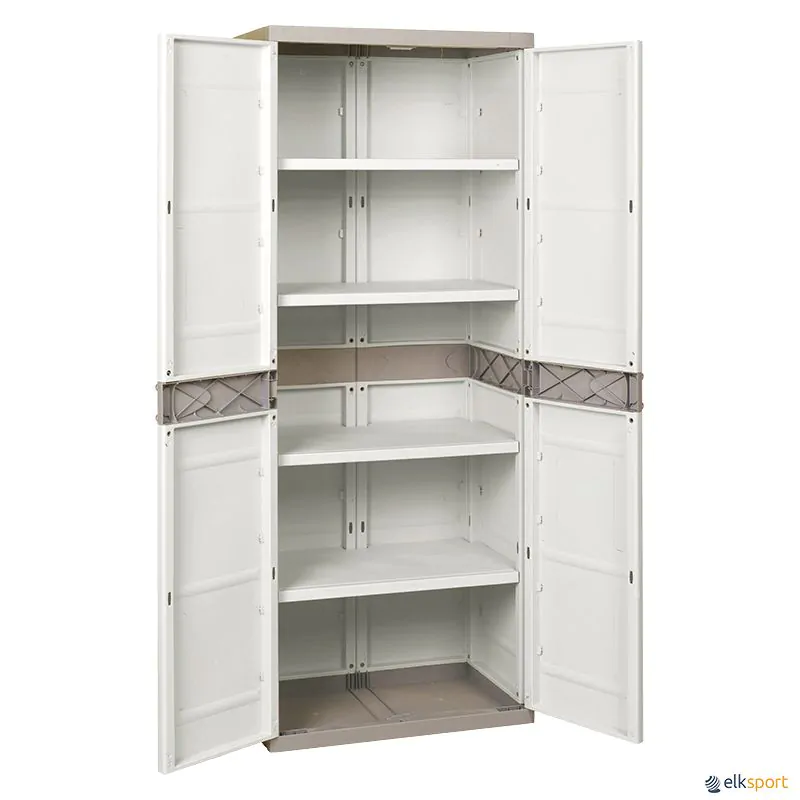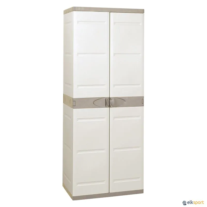 Armário fabricado em resinas plásticas de alta qualidade. Robusto e resistente a ambientes húmidos. De fácil montagem sem ferramentas. Possibilidade de fechar com aloquete (não incluído).