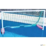 Balizas de polo aquático em perfil de alumínio 40 x 20 mm, lacado em branco para maior durabilidade. Indicadas para treino, mini-polo e iniciação. Redes, flutuadores e lastros incluídos.