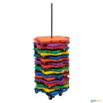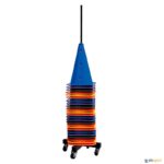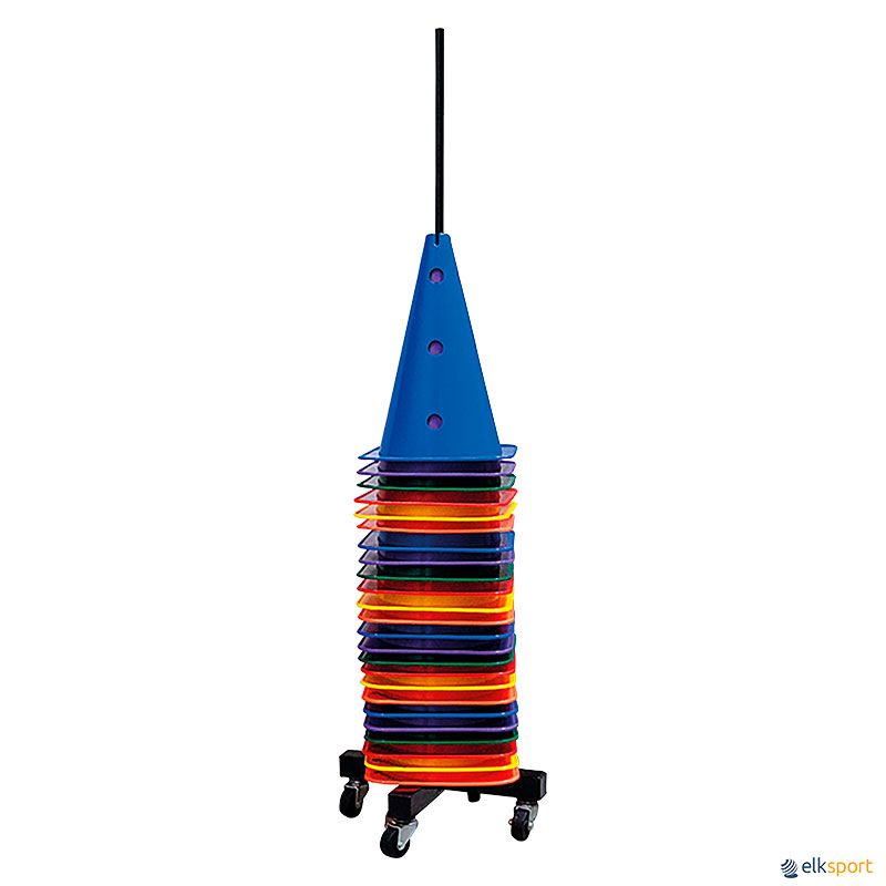 Carro para plataformas deslizantes e cones, fabricado em aço pintado a pó, protege contra golpes e riscos durante o transporte de cones e plataformas. Possui um poste central com 1,5 cm de diâmetro para empilhar vários cones ou plataformas em segundos. O seu design vertical minimiza o espaço necessário para armazenamento e facilita o acesso aos materiais. Cada carro tem 4 rodas resistentes, sendo 2 delas com travão para auxiliar durante a carga ou descarga.