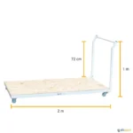 Peso máximo recomendado: 350 kg. Dimensões: 2 x 1 m. Altura da pega : 1 m.