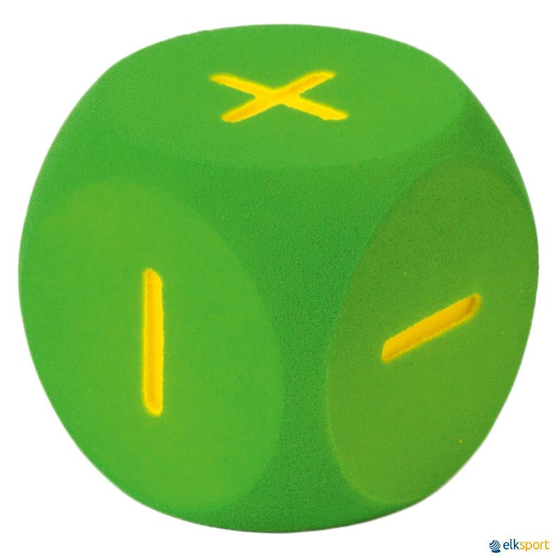 Dado de espuma da marca Volley com símbolos matemáticos (+/–) para realizar jogos, iniciação à matemática, etc. Recomendamos a sua utilização em conjunto com o dado espuma pontos.