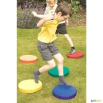 Estes discos sonoros são ideais para desenvolver o equilíbrio, lateralidade e sequenciação de habilidades etc… Conjunto de 6 discos coloridos, somente 1 deles imite som ao ser pisado, esta particularidade permite uma grande riqueza pedagógica na criação de exercícios. Podem se adicionar mais conjuntos para diversificar as atividades. Cobertura dos discos em nylon, com base antiderrapante para interior e exterior, lavável.