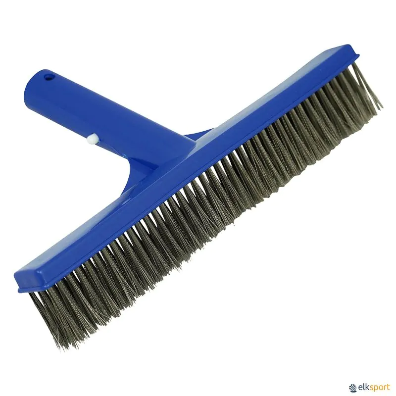 Escova de limpeza reta com estrutura em polipropileno e pente de aço inoxidável. Ideal para limpeza das paredes da piscina, ou seja na linha de água.