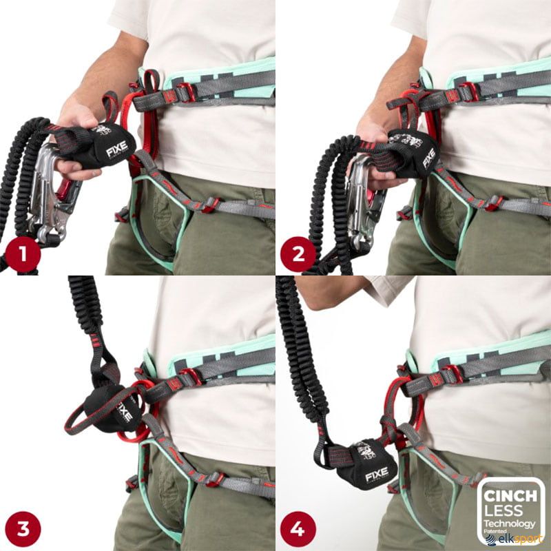 O primeiro dissipador de via ferrata com sistema Cinchless,um ajuste mais natural e direto. O seu inovador sistema Cinchless, patenteado pela Fixe, liga o dissipador ao arnês sem o comprimir, reduzindo o efeito de pêndulo e deixando o anel ventral livre para maior versatilidade. Mais compacto e leve, facilita as manobras e proporciona maior conforto para enfrentar qualquer via ferrata, parques de aventura ou formações.