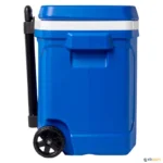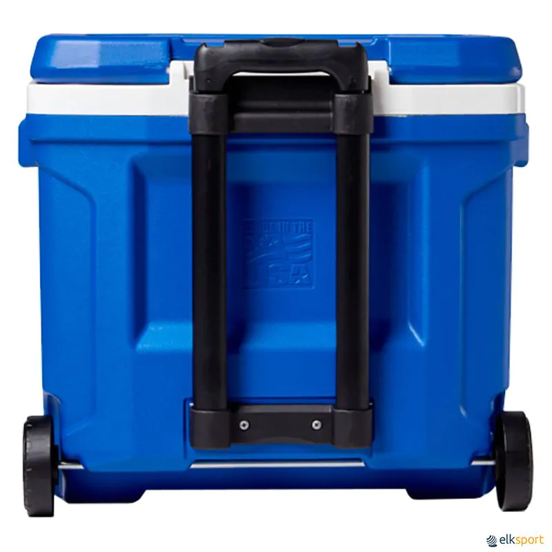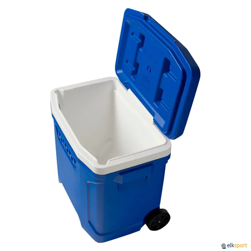 A Geleira com capacidade de 26 litros, sobre trolley com pega, rodas e câmara térmica de 28 mm, que mantém o gelo no seu interior durante 3 dias. Permite a colocação na vertical de garrafas de 1,5 l, tratamento anti-odores e isolamento de poliuretano injetado de alta densidade (Thermecool Eco-friendly).