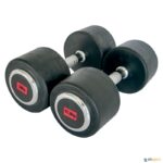 Halter com pega ergonómica e tratamento em crómio para maior durabilidade e melhor aderência. Este halter é ideal para exercícios de força tanto em ginásios como em casa. Graças ao seu revestimento em borracha, não danifica o chão nem produz ruído.