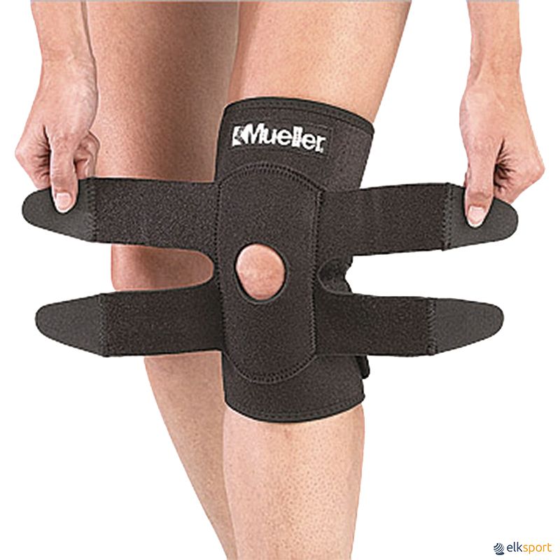 Joelheira estabilizadora ajustável que uma vez colocada, e com apoio de cintas tensoras cruzadas, reforça e estabiliza a articulação do joelho sem limitar o movimento. Dupla camada de neopren em volta da rótula para melhor proteção. Concebida para que não se formem pregas na parte posterior do joelho.
