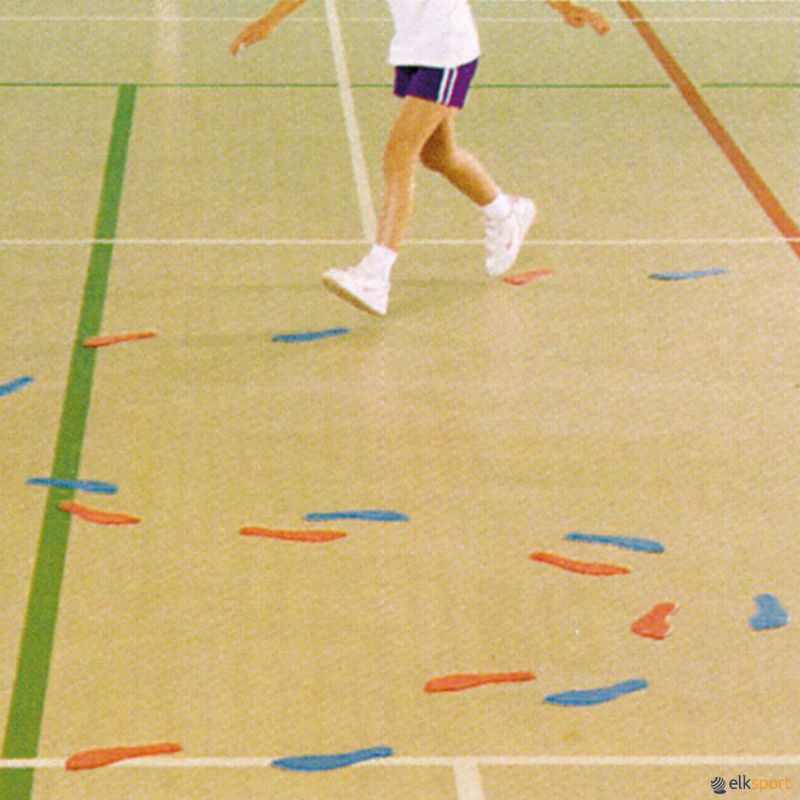 Jogo dos pés composto por: 10 pares pés, sendo os direitos de cor laranja e os esquerdos de cor azul. Sistema de apoio para orientar os conceitos de direções, movimentos e deslocações das diferentes partes do corpo, assim como para melhorar diversas capacidades básicas. A superfície posterior tem uma textura rugosa que permite manter cada componente no seu lugar.