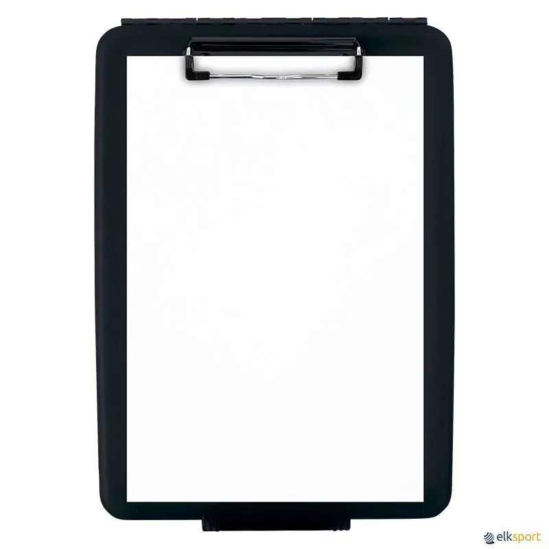 Para servir de suporte de escrita e armazenar pequenos objetos como apito, cronómetro, caneta, anotações, etc.