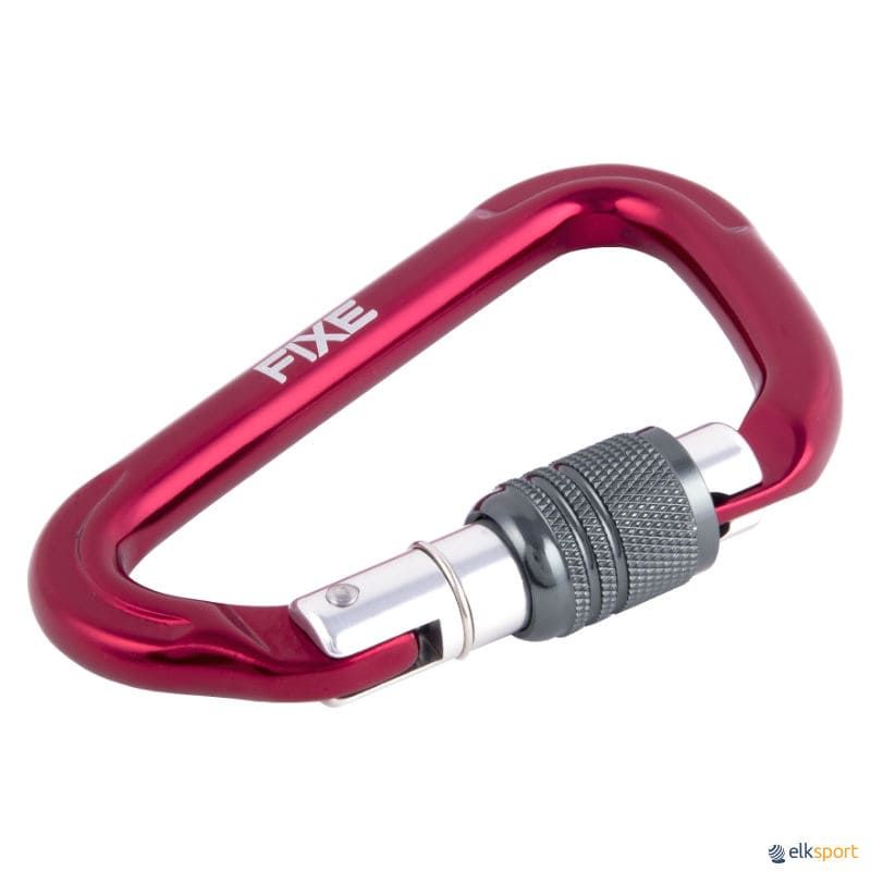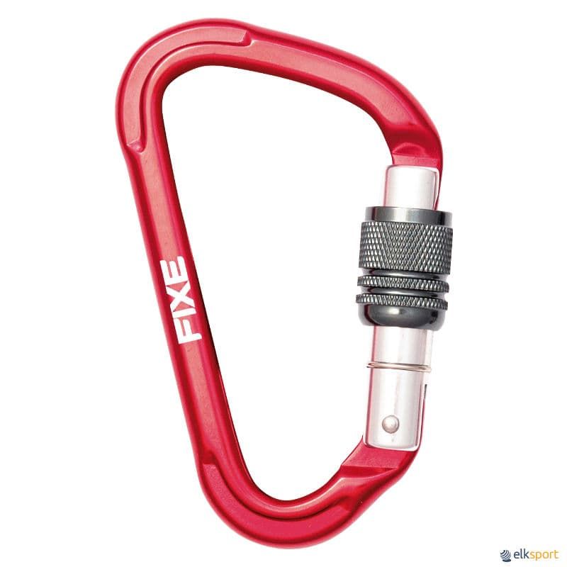 Mosquetão assimétrico polivalente Rock Stone da marca Fixe, com fecho de rosca forjado a quente e sistema Keylock.