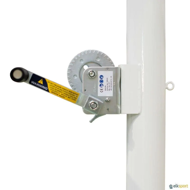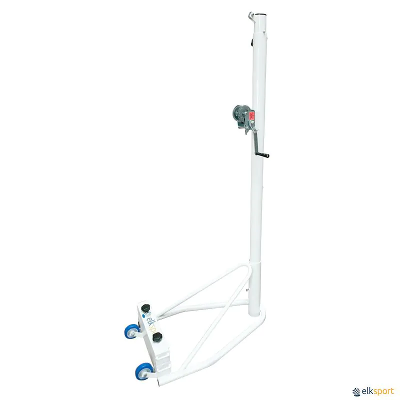 Par postes voleibol móveis e lastrados. Postes em tubo de ferro pintado de secção redonda de 80 mm de Ø. Possibilidade de colocação da rede em 7 alturas (postes fixos) ou 8 alturas (postes móvel) através de um passador. Tensor de manivela e roldana com eixo simples. De acordo normativa UNE-EM 1271.