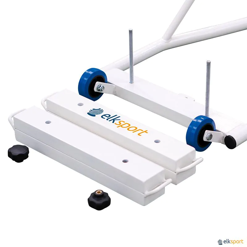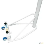 Deslocação facilitada graças a 2 rodas incorporadas na base. Além disso, a base conta com uma placa perfurada  para permitir o aparafusamento no chão, se necessário. Os parafusos de fixação ao solo, com cabeça, larga são opcionais.