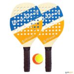 Jogo de raquetes e bola para jogar ténis de praia. Este jogo de raquetes para ténis de praia oferece o melhor desempenho graças às suas raquetes fabricadas em madeira de choupo de alta qualidade, o que as torna mais resistentes do que as raquetes de madeira convencionais.