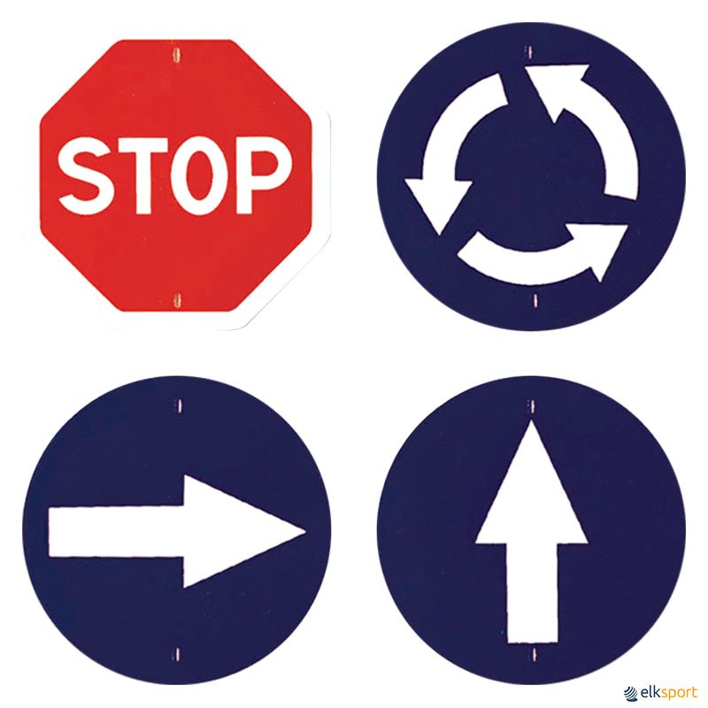 Colocam-se através de 2 clipes de fixação nos postes, independentemente do seu tamanho. Existem também diferentes possibilidades (tijolos, cones, bases) para sustentar os postes, permitindo criar circuitos de circulação estáveis e muito variados. Ao percorrê-los a pé, de bicicleta, em plataformas deslizantes ou por qualquer outro meio, os alunos aprenderão a conhecer e a respeitar os sinais de trânsito.