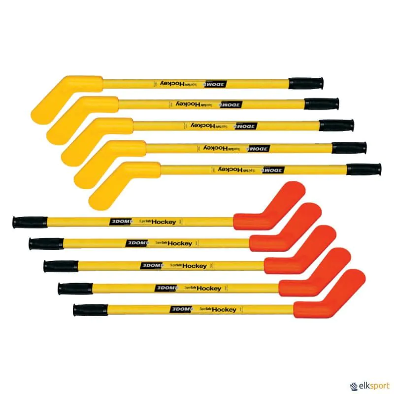 Os diferentes modelos de sticks DOM são fabricados com o objetivo de aumentar a segurança do jogo nos jovens jogadores. Com eles poderão sem perigo, iniciar os alunos nas diversas modalidades de hóquei (sala- campo-gelo-street) bem como inventar outras combinações de jogo com estes sticks. Estes revolucionários sticks super seguros são mais caros que os tradicionais, mas é um investimento a longo prazo, com uma esperança de vida de 3 a 5 vezes maior que qualquer outro produto do mercado. O segredo encontra-se na fabricação a partir de um polietileno de grande qualidade. De forma oval e reforçado com 2 perfis que lhe dão uma flexibilidade ideal. As pás são fabricadas em polietileno integral, o que lhes dá grande solidez mas ao mesmo tempo flexibilidade. Todas as pás estão moldadas diretamente sobre o stick, não levam nenhum parafuso nem grampo para o unir, o que torna o stick indestrutível, firme, mas flexível. A pá não danifica nem deixa marcas em qualquer superfície onde se jogue. Todos os modelos existem em 2 cores para distinguir as equipas.