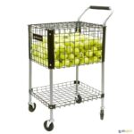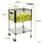 Carro muito resistente e de grande capacidade. Fabricado em fio de aço revestido, com esquinas reforçadas, equipado de uma pega revestida de espuma EVA e de 4 rodas (duas com travões) e de uma bandeja inferior para colocar e transportar outros objetos. Possibilidade de acrescentar um cadeado para manter a cesta superior fechada.