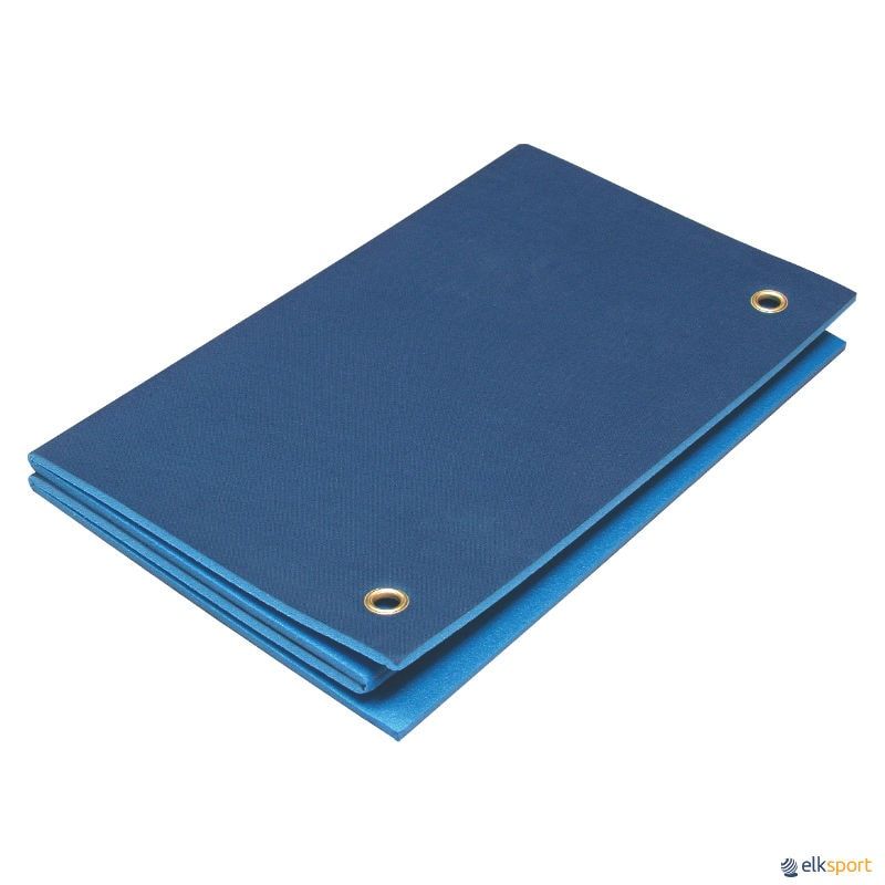 Tapete de fitness fabricado em espuma de alta qualidade, com uma face têxtil que o torna mais higiénico e agradável ao toque. Pode ser lavado com sabão. É dobrado em 4 partes para facilitar a arrumação e possui 2 ilhós para ser pendurado.