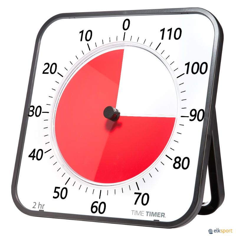 O cronômetro ajuda a responder a essa pergunta universal. Projetado para ajudar os alunos e atletas a perceberem “quanto tempo resta” e o conceito do tempo decorrido de forma didática. Mova o disco vermelho para o tempo desejado, a contagem decrescente começa e o disco vermelho desaparece, mostrando o tempo restante. Além de mostrar quanto tempo resta, a passagem do tempo é visível. As crianças entenderão facilmente o cronômetro, mesmo quando não conseguem entender a hora num relógio tradicional.