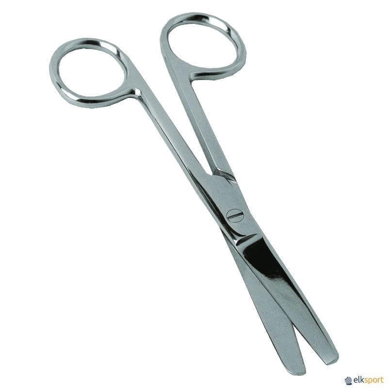 Tesoura reta corta adesivos fabricada em aço inoxidável.