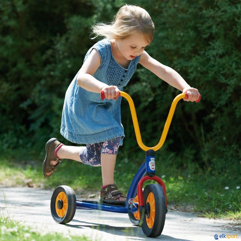 Trotinete da marca Winther, com uma ampla plataforma de apoio dos pés. Máxima segurança e estabilidade.