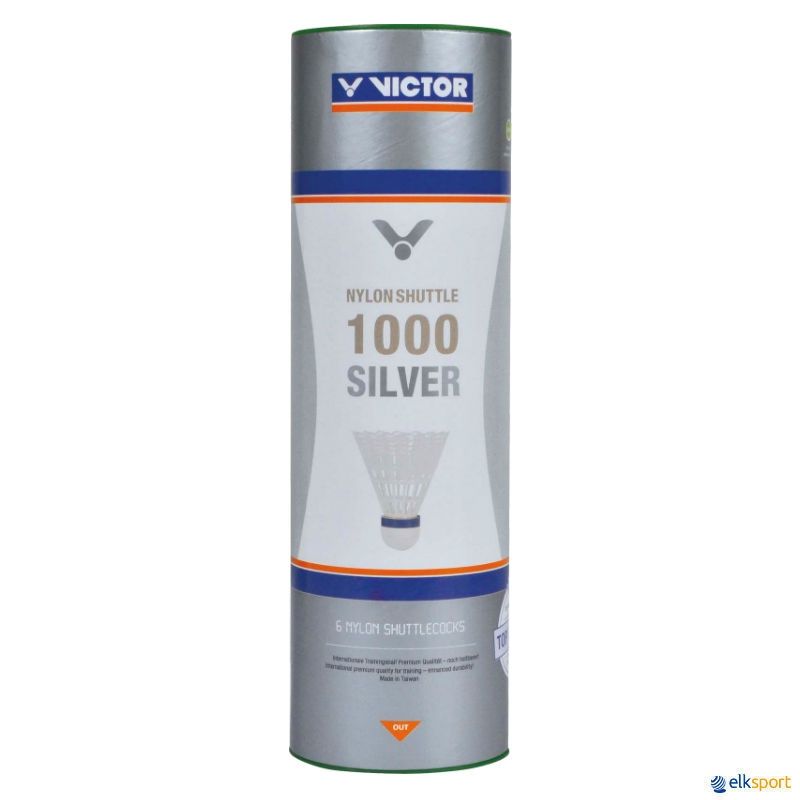 Tubo com 6 volantes de badminton Victor 1000. Volante de treino de boa qualidade. Base em cortiça sintética e saia em nylon.