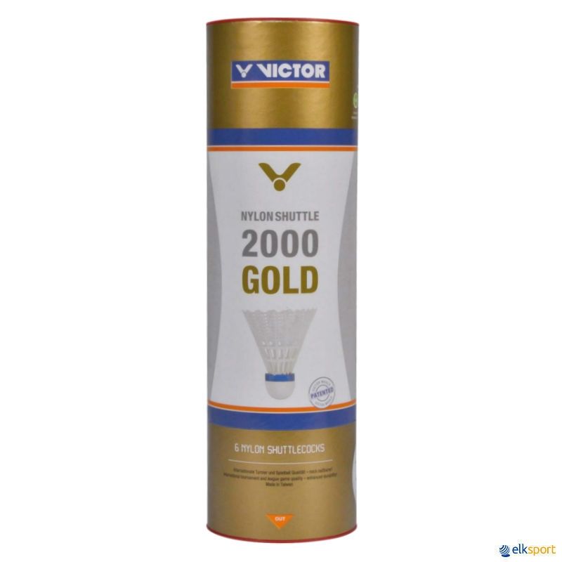 Tubo com 6 volantes de badminton Victor 2000. Volante de competição de boa qualidade. Base em cortiça 100% natural e saia em nylon.