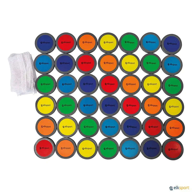 Os jogadores competem contra o relógio para descobrir os discos da cor da sua equipa.