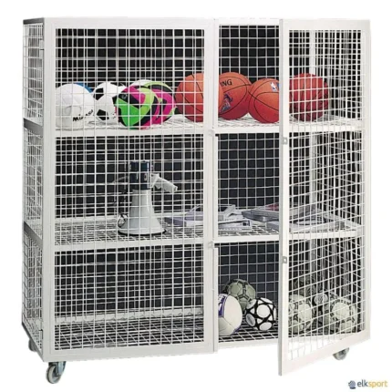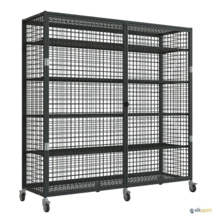 Fabricado em estrutura de aço estirado a frio, de 25 x 25x 1,5 mm e malha soldada de 50 x 50 mm e espessura de 5 mm, montado sobre 6 rodas de tipo industrial muito resistentes, 3 delas com travão. Tratamento contra a corrosão com pintura epoxi ao forno. Pode-se fechar por aloquete (não incluído). Possui 4 prateleiras metálicas reguláveis em altura. É fornecido desmontadoPortes de envio extra. Consultar preço. Dimensões: 200 x 200 x 60 cm.