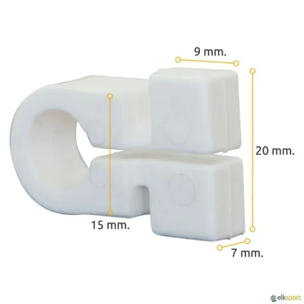 Ganchos fabricados com entrada dupla, com os quais se obtém uma perfeita fixação da rede. Para balizas com ranhura de 8 e 10mm. Para outros tipos de balizas pode ser aparafusado no poste. Inclui parafuso de fixação.